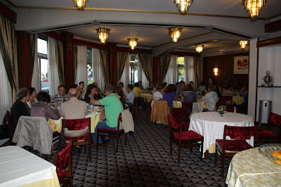 O almoço foi servido em Almeirim onde degustámos a magnífica sopa da pedra. De tarde, ainda na mesma cidade, visitámos a Quinta do Casal Branco, propriedade antiga da zona, ainda nas mãos da família dos seus fundadores, agora administrada pelo Sr. Eng.º José Lobo de Vasconcellos, que nos recebeu amavelmente fazendo uma pausa nas suas atividades. Foi-nos facultada uma visita às instalações da adega onde observámos a fase de engarrafamento dos vinhos e dada uma explicação da atividade da empresa. Percorremos ainda parte do espaço onde se situa a casa da família Vasconcellos e ficámos maravilhados com o seu lindo jardim. Com muita pena nossa e devido à distância, não nos foi possível visitar a zona da coudelaria.